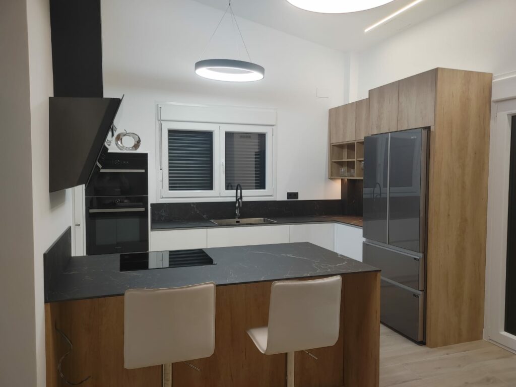 Reforma de cocina con isla y toques biofílicos: fusión de luz, diseño y funcionalidad